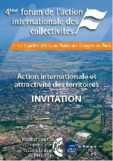 La quatrième édition du Forum de l’action internationale des collectivités aura lieu : les lundi 1er et mardi 2 juillet 2013, au Palais des Congrès de Paris, 2, place de la Porte Maillot, M° Porte Maillot.