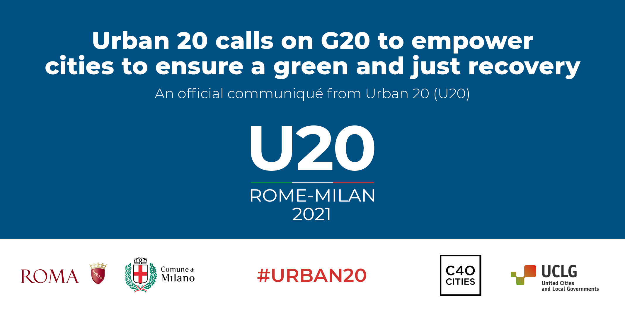 Rome, Italy (June 17, 2021) - Today, the Urban 20 (U20), led by Virginia Raggi, Mayor of Rome and Giuseppe Sala, Mayor of Milan, urged the Group of Twenty (G20) Leaders to deliver a green and just recovery from COVID-19, ensure global vaccine equity, strengthen local public service provision and expand collaboration with local governments to achieve an inclusive, sustainable, and prosperous future.