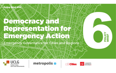 Recently, United Cities and Local Governments, Metropolis and LSE Cities launched the 6th Policy Brief of their joint Emergency Governance Initiative, dedicated to democracy and representation gaps in contexts of emergency, and the role of local and regional governments in safeguarding democracy in the midst of crises.