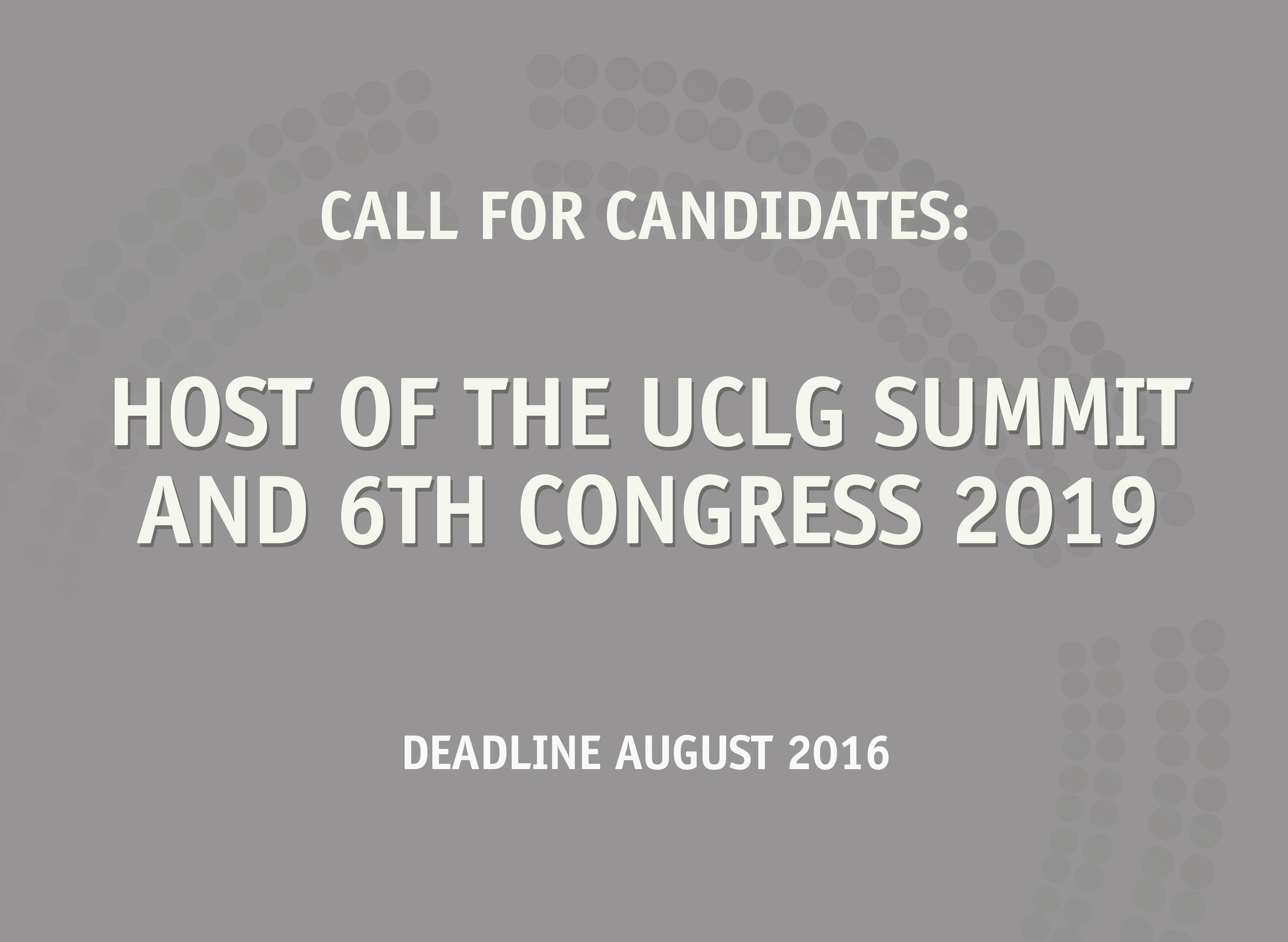 Last call to host the Summit of Local and Regional Leaders and 6th World Congress in 2019