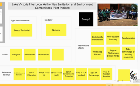 Sobre todo, una atención especial fue dedicada para que los participantes aprendieran, analizaran y compartieran algunas prácticas y proyectos interesantes de DC. Así, los participantes tuvieron la oportunidad de ver y aprender cómo funciona la CD en la práctica: desde el intercambio cultural y la educación en Blantyre (Malawi), presentado por el alcalde Wild Ndipo, hasta los concursos de saneamiento y medio ambiente en la región del Lago Victoria, presentados por Mercy Stephen Sebuliba y Alex Kivumbi, y el intercambio de patrimonio del espacio público entre Rabat y Dakar, presentado por la Dr. Hayat Sami. Además, los participantes tuvieron la oportunidad de reflexionar sobre la experiencia de la ANAMM en materia de cooperación sur-sur en Mozambique y el modelo del municipio de EThekwini para desarrollar una política de CD en la ciudad.