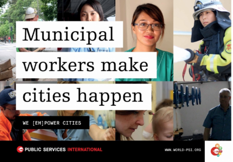 « Comme l’a déclaré Rosa Pavanelli, la Secrétaire générale de l’ISP : « Les travailleuses et travailleurs des municipalités font tourner et vivre les villes au quotidien, en fournissant les services publics essentiels dont nous tous avons en permanence besoin et en servant sans relâche les communautés urbaines et locales. Ces travailleuses et travailleurs doivent pouvoir s’appuyer sur des ressources adéquates, avoir des niveaux de dotation en personnel et des équipements adaptés afin de garantir la qualité des services et d’effectuer leurs tâches en préservant leur santé et sécurité. Nous remarquons toutefois que leurs conditions de travail laissent souvent à désirer partout dans le monde. Lorsque les mesures d’austérité, la privatisation, l’évasion fiscale et la corruption frappent les administrations locales de plein fouet, les municipaux sont les premiers à en payer les frais. Le travail précaire, les bas salaires, les violations des droits syndicaux et le manque de formation et d’équipements sûrs sont en effet des défis permanents chez les travailleurs et travailleuses des municipalités. Nombre d’entre eux/elles travaillent dans des conditions de grande difficulté, et avec un engagement professionnel et personnel auprès de leurs des ville et communautés qui vont bien au-delà de leur tâches base. Notre campagne restitue un visage à ces travailleuses et travailleurs tout en montrant que les villes ne peuvent tout simplement pas fonctionner et vivre sans leur travail ».
