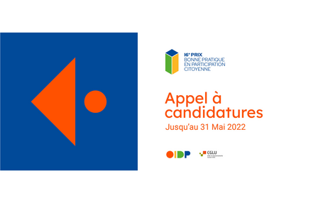 L'Observatoire international de la démocratie participative (OIDP) et Cités et Gouvernements Locaux Unis (CGLU) invitent les gouvernements locaux et régionaux à soumettre leur proposition pour la 16ème édition du prix. Ce prix est décerné chaque année pour récompenser les expériences et les politiques publiques réussies en matière de participation citoyenne, d'engagement communautaire, d'innovation démocratique, de délibération publique et de gouvernement ouvert.
