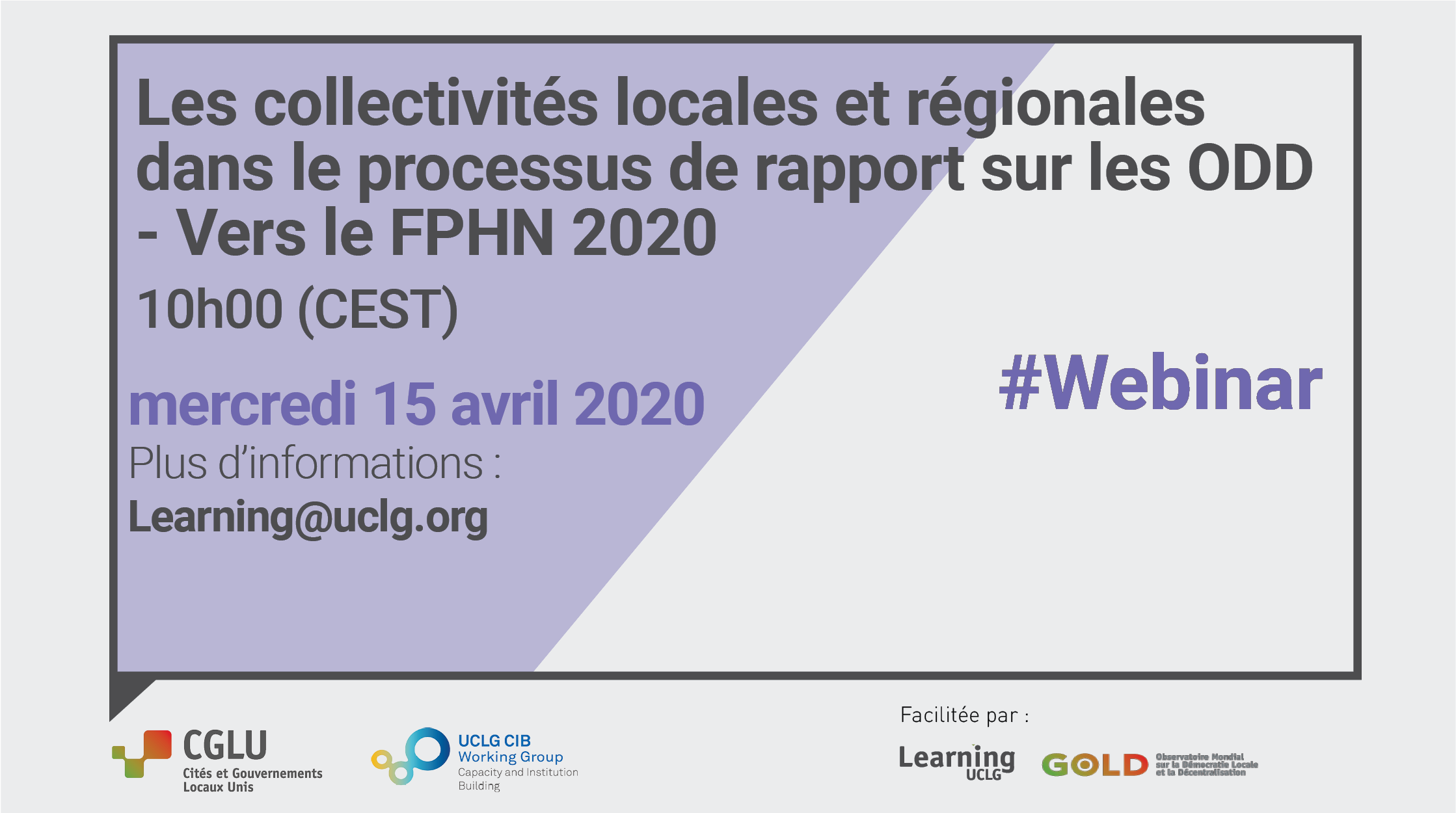 Tous les participants sont priés de s'inscrire via les liens ci-dessus ou de contacter learning@uclg.org